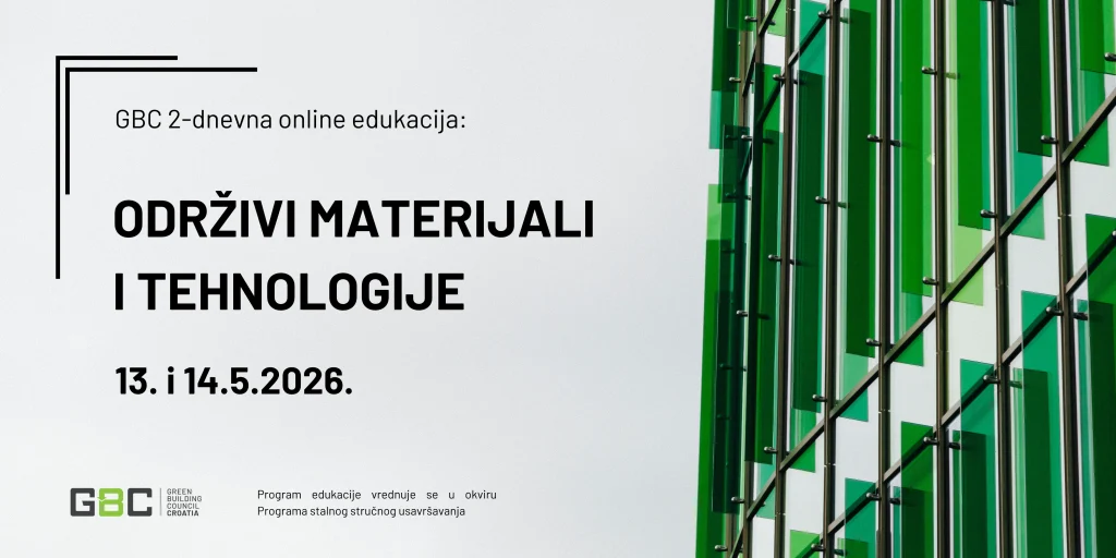 - 2-dnevna online edukacija: Održivi materijali i tehnologije, 13. i 14.5.2026.